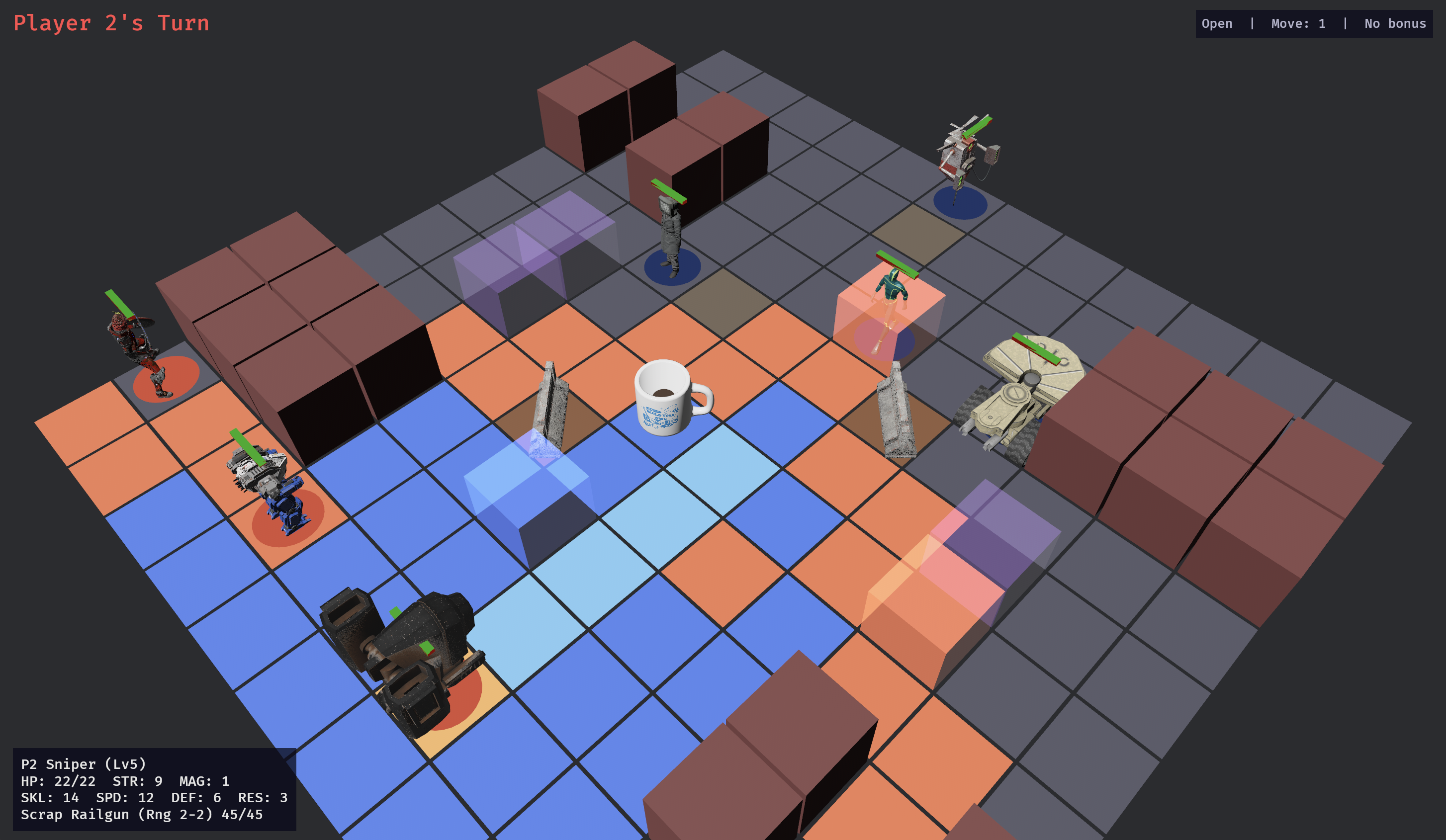 I've always loved trying to build and replicate games that I am huge fans of. I built my own mini Zelda adventure, and a few Pokemon inspired games (One, Two). This ones inspiration comes from my love of tactics games, especially Fire Emblem.